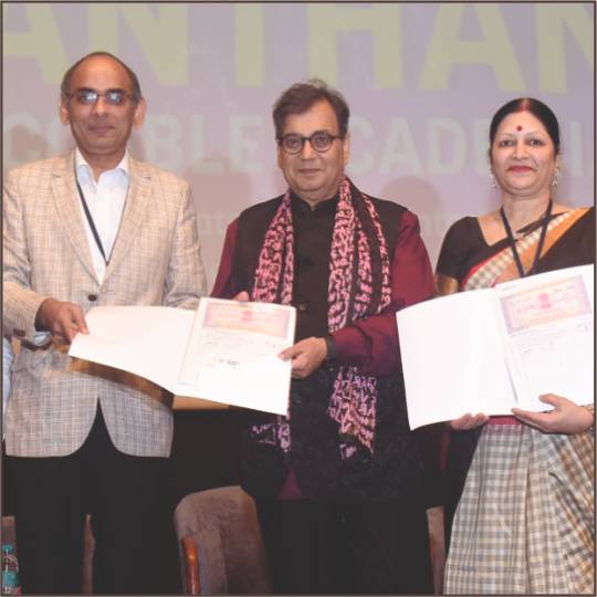 Suryadatta Institute of Mass Communication and Event Management entered in to an education MOU with Media and Entertainment Skill Council for a period of 3 years starting from Oct 2019, in the presence of Mr. Subhash Ghai, Director of Whistling Wood International, Amit Behel of Cinema and TV artist association, Mr. Subba Rao from Ministry of Human Resource Development among others.