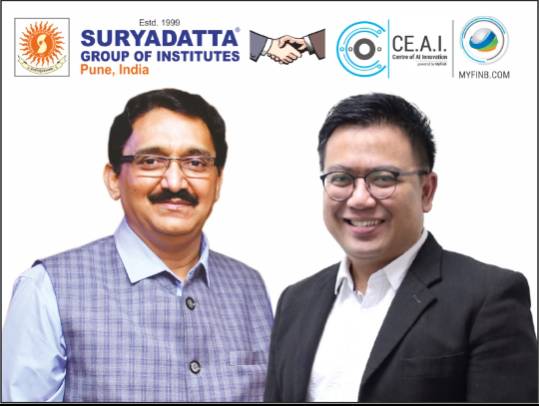 Suryadatta Group of Institutes launches Centre of Excellence in AI in association with MyFinB & CE.AI, Singapore (SGI – CE. AI Suryadatta Group of Institutes (SGI),is proud to announce the launch of its very own Centre for AI Innovation (CEAI) in partnership with, MyFinB Holdings Pte Ltd, headquartered in Singapore.
