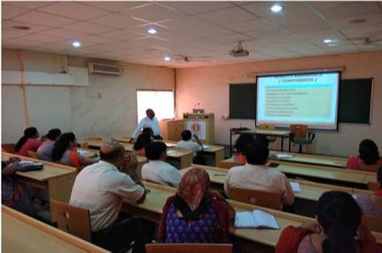 Prof. Susheel Sharma Associate Dean and a Professor of information systems (IS) in the Miller College of Business at Ball State University, United States conducted the FDP. Prof Sharma is an alumnus of BITS-Pilani and Indian Institute of Management, Lucknow (IIML). Prof. Sharma has a unique distinction of having earned two doctoral degrees. He has over 10 years of administrative leadership experience and more than 25 years of experience in higher education. A Leadership Fellow in Higher Education at Harvard University’s Management Development Program, he has co-authored/edited/co- edited twelve (12) books and published over 240 manuscripts including over eighty (80) refereed journal articles in some of the best journals in his field. His primary research interests are in information systems security, e-Learning, e-Government, computer-mediated communications, human computer interaction (HCI) and community and social informatics. Prior to joining the faculty at Ball State, he was a visiting research associate professor at the Department of Management Science at the University of Waterloo (Canada). He has taught several graduate and undergraduate courses on a variety of subjects including database management, ERP systems (SAP), electronic commerce, computer and network security, management information systems, systems analysis and design, distributed data processing systems, computer networking, and other information systems related subjects. He has earned recognition for his teaching and research and has been a recipient of the Miller College of Business ‘Extra Ordinary Year Award’ for three consecutive years (2003, 2004, & 2005), Outstanding Researcher of the Year Award at the university level (2006-2007), Outstanding Researcher of the Year at Miller College of Business (2008) and Outstanding Faculty of the Year Award at the university level (2008-2009). Prof Sharma has served as a consultant and advisor to numerous companies and organizations including World Bank funded projects. He, currently serves as editor-in- chief of The International Journal of E-Adoption. He has been a reviewer and member of the editorial boards for several national and international journals. He has travelled worldwide and lectured in several business schools around the globe in Europe, Australia, New Zealand, Asia, and North America. While focusing his talk on theme “Changing Landscape of Higher Education”, he interacted with faculties and shared his vast experience on how learning process takes place in western countries.