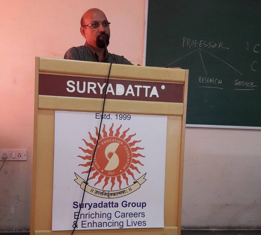 Deliberating on what are the expectations from a Professor/Teacher, he mentioned that a Professor/Teacher is expected to contribute in three areas namely Teaching, Research and Service to Students. He emphasized on 3 Cs as indicator for changing landscape of higher education: Connectism, Constructism, and Collaboration. Through connectism, he emphasized on strong bonding of instructors and students as one cohesive unit which learns together to acquire knowledge. Through Constructism, he highlighted how an instructor now has to take the role of facilitator. Through collaboration, he shared his opinion how students and faculties can create learning committees to mutually gain from each other through lot of research. He encouraged the faculties to take up lots of research activities, and share the same with their students. He asked the faculties to be a catalyst for students in terms of igniting the creativity and challenge their limits. Keeping in mind the globally competitive scenario, Suryadatta Group of Institutes is exploring the possible foreign collaborator and in this context, would pursue such collaboration further with Ball State University (BSU, USA).