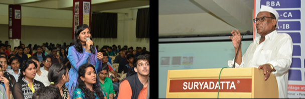 Prof.Dr. Sanjay B Chordiya while introducing the Mr. Manish Gupta to students said that he is family member of Suryadatta Group. The lessons shared by him about his own experiences in the life will be of great importance to the students as they too can become wiser from such experiences. He further announced that Mr. Manish Gupta will interact with Suryadatta students more frequently so as to add sparkle in their journey towards being successful professional.