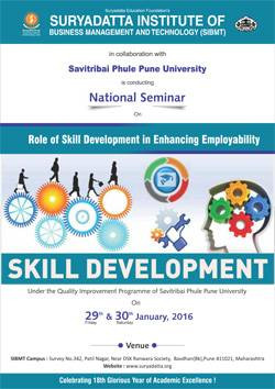 Suryadatta Institute of Business Management & Technology in collaboration with Savitribai Phule Pune University is Conducting National Seminar On Roll Of Skill Development in Enhancing Employability