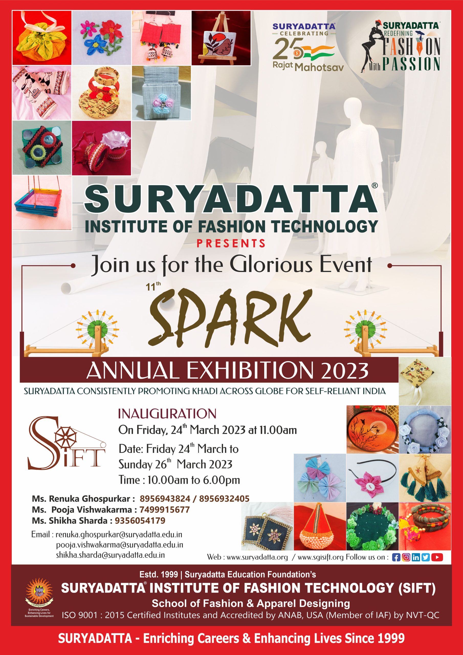 Every year, Suryadatta Institute of Fashion Technology (SIFT) organizes an annual exhibition : SPARK showcasing products prepared by its Fashion Design students on any one particular theme.
