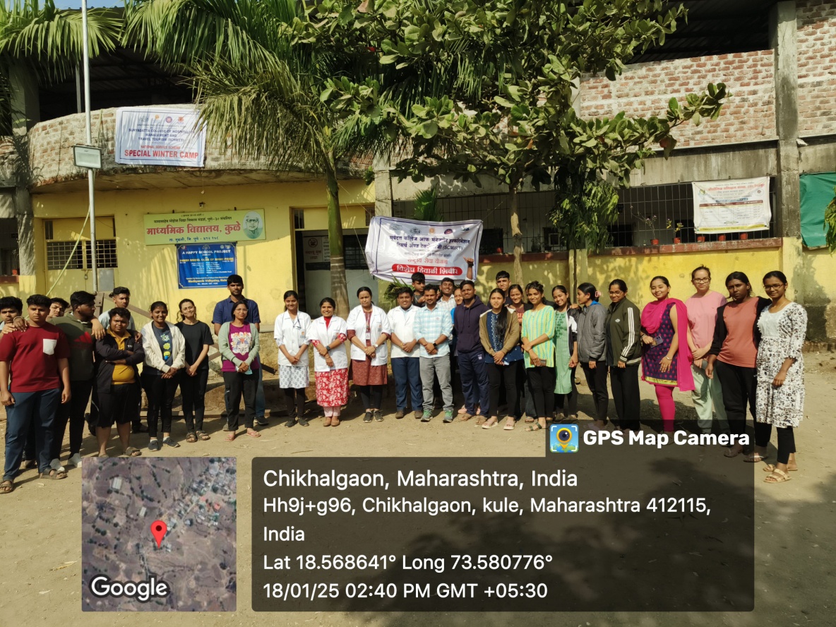 A free health check-up camp was organized by the NSS unit at Kule, Maharashtra, with the objective of promoting health awareness, offering free medical consultations, and highlighting the importance of routine health check-ups among the local community. Students and faculty members of SIHSCOP actively participated in the camp and assessed over 30 patients. The initiative not only served the health needs of the community but also provided a valuable opportunity for students to engage in meaningful community service and hands-on learning.