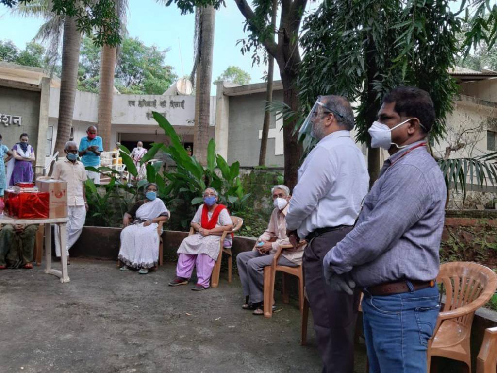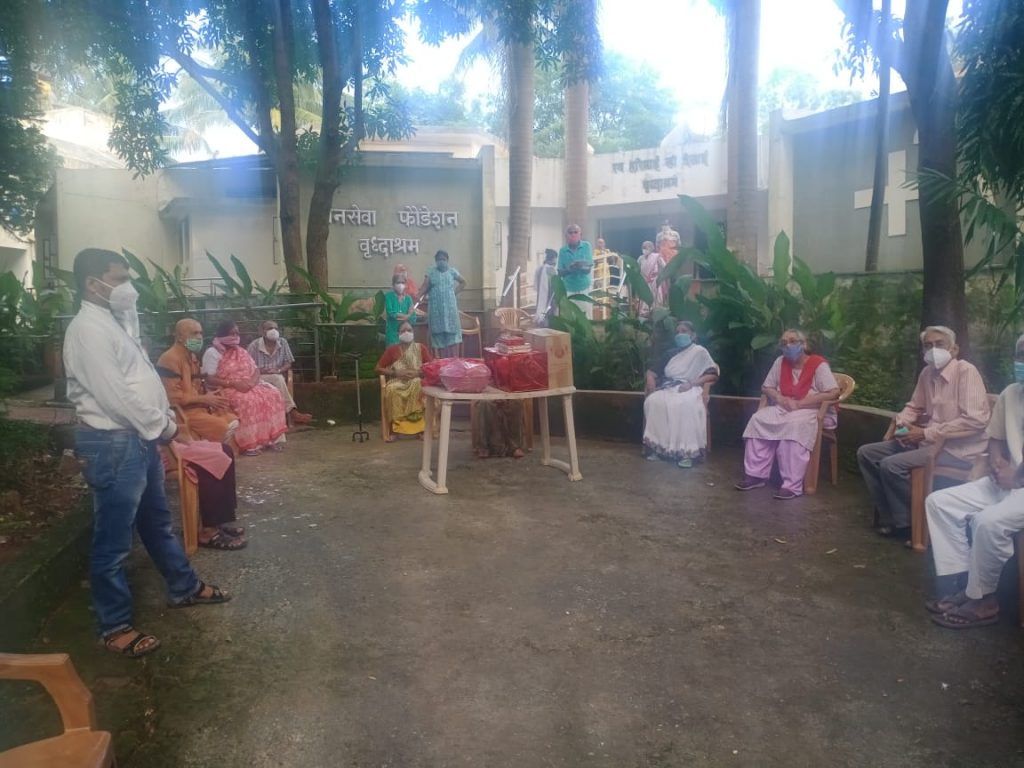 SCMIRT Team reached at Vruddhashram at 3 pm. Permission was already taken with promise that all Precautions like social distancing, masks and other safety measures will be followed during the visit. Ms. Sonali Shaha administrator of aashram guided and extended the cooperation.